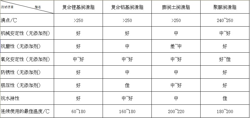 各種高溫潤(rùn)滑脂性質(zhì)比較分析 |